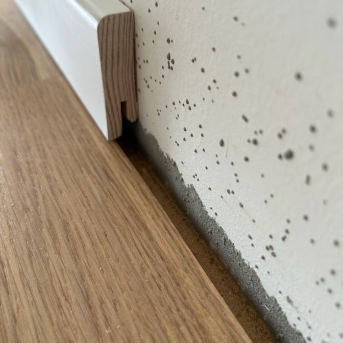 Furnirane i lakirane kutne letvice se pričvršćuju montažnim ljepilom na zid, spojevi se režu u kut 45*, a na spoju kune letvice i parket se silikonira silikonom u boji parketa.